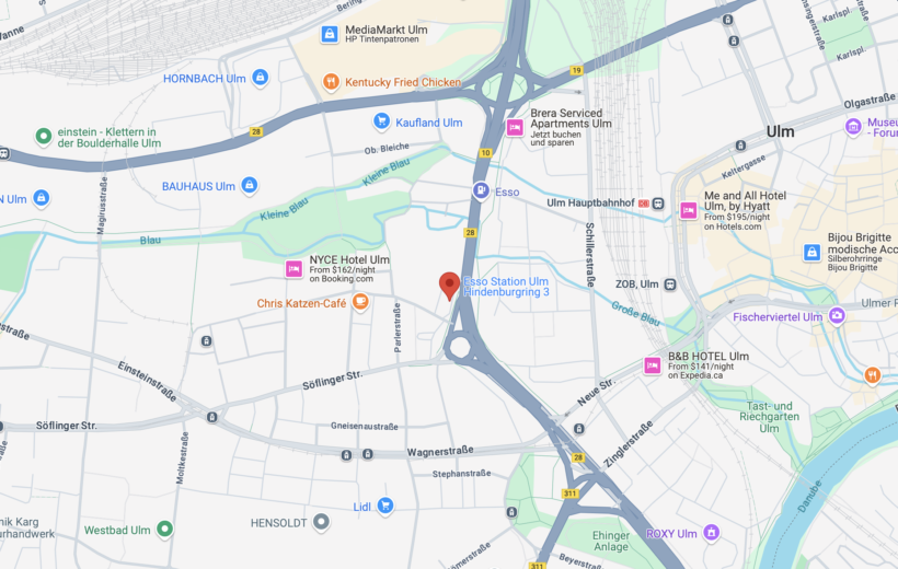 Місце збору в Ульмі – Hindenburgring 3, 89077 Ulm, Німеччина (заправка Esso)